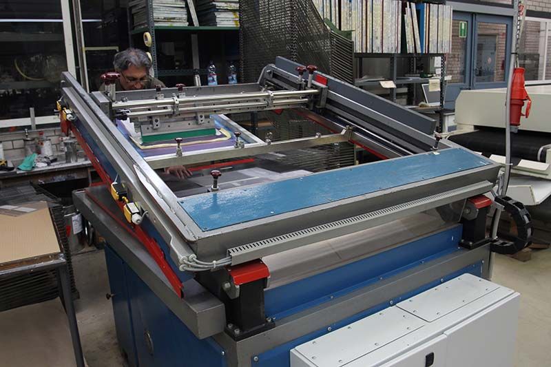 Moderne Siebdrucklinien: In unserer staubarmen Produktionsumgebung fertigen wir langlebige Beschilderungen mit höchster Farbintensität.