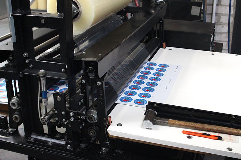 Schutz & Montage: Für den Werterhalt nutzen wir Laminierungs- und Kaschieranlagen, die Abziehfolien zum Oberflächenschutz auftragen. Zudem garantieren wir eine blasen- und faltenfreie Verpressung von Kleberstanzlingen für eine perfekte Montage beim Kunden.